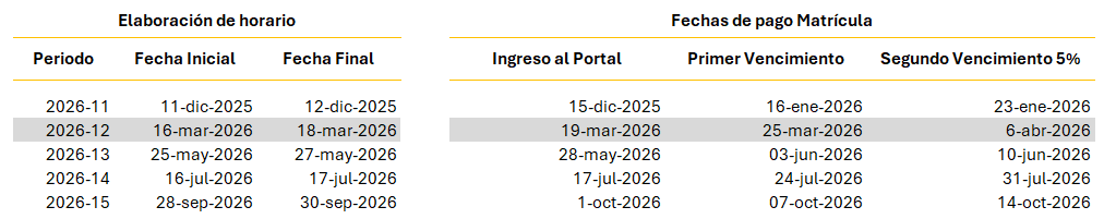 Fechas de Pago de Matrícula