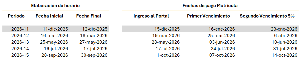 Fechas de Pago de Matrícula